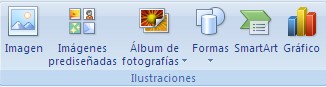En esta parte se encuentran todo tipo de gráficos, imágenes, fotos; que se quieran incluir en la presentación. Al hacerle clic en alguno de estos íconos, aparecen una serie de formas que también hacen parte de este y que desde luego nos son de mucha ayuda.